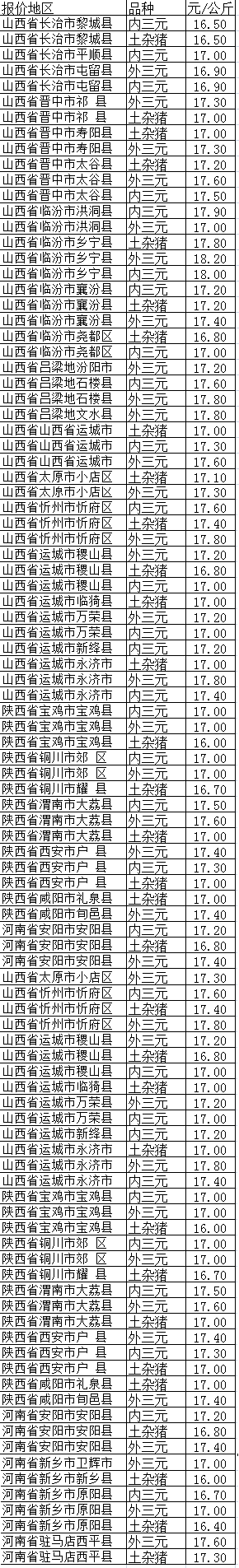 2015年9月20日豬價格